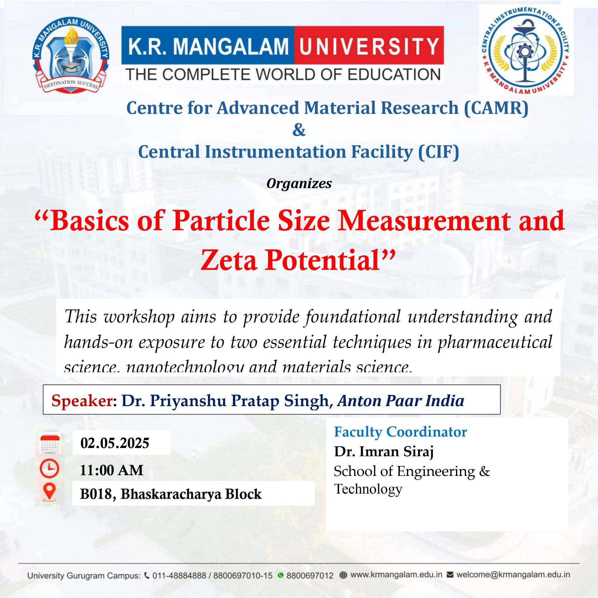 Central Instrumentation Facility, B409, K. R. Mangalam University,