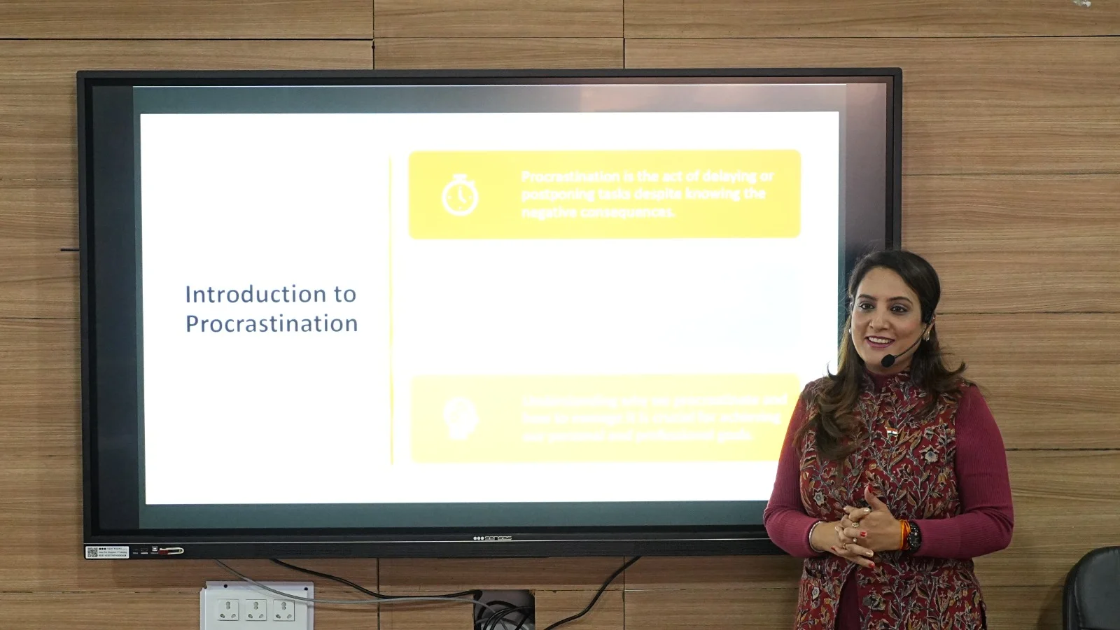 Ms. Sonal Goel, a distinguished civil servant, delivered a thought-provoking talk on several crucial topics including Procrastination and Time Management Techniques, and elaborating on the detrimental effects of procrastination, emphasizing how it can hinder personal growth and success. She shared practical strategies and tools to combat procrastination, providing attendees with actionable steps to overcome this common challenge
