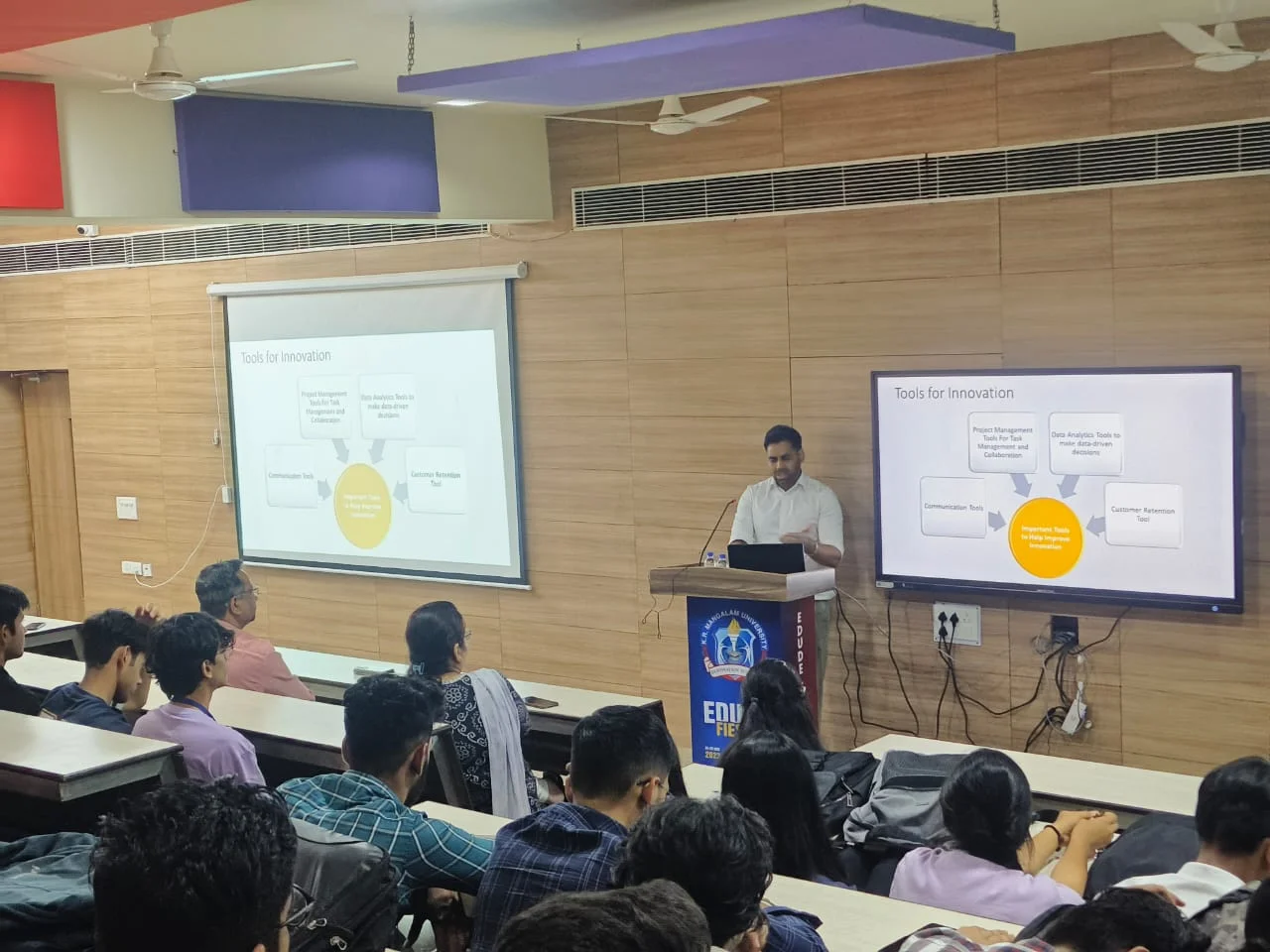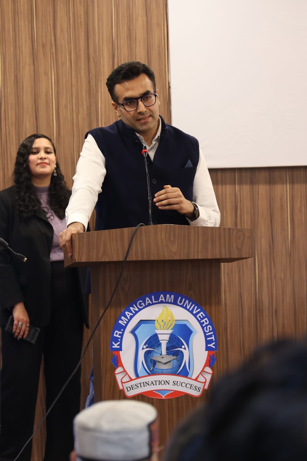 K.R. Mangalam University organised an insightful Expert Talk titled “Engineering Your Path: The Entrepreneurial Mindset.” The session was delivered by Mr. Sanjay Kumar Malik, Director at Lepton Projects Private Limited, who shared valuable insights on innovation, self-driven success, and entrepreneurial thinking.
