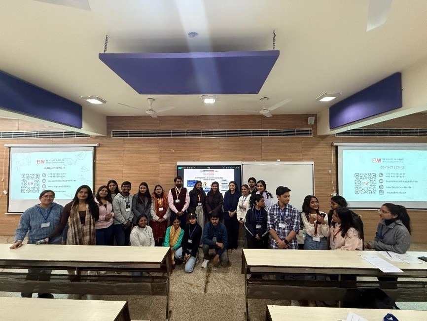 School of Liberal Arts organized a session on “Mastering Emotions and Communication: Unlocking the Life Skill for Success”. The session was conducted by Ms. Varsha KV and Ms. Aakansha Sharma, Co-founders of Beyond Words, an organisation dedicated to mental health awareness and emotional well-being. The workshop aimed to help students develop emotional intelligence, enhance communication skills, and build meaningful connections through self-awareness and empathy.
