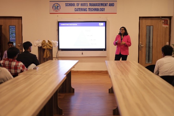 An expert session on “Evolving Strategies: Trends in Marketing & PR for Budget and Hospitality Sectors” was conducted, featuring Ms. Bhavna Mishra Nanda, Portfolio Director of Marketing, Holiday Inn Express – An IHG Hotel. She shared insights into innovative brand marketing strategies adopted by Holiday Inn to attract and engage guests.